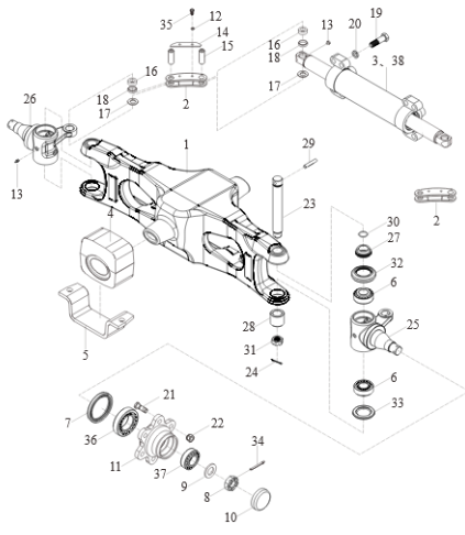 -Połączenie siłownika skrętu z ramieniem zwrotnicy